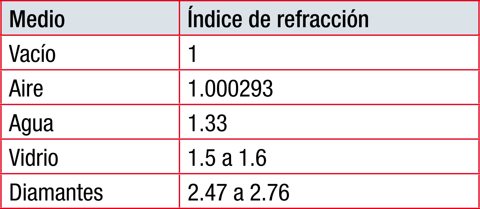 Observando la tabla anterior se deduce el porqué del brillo de los diamantes, o sea, estos tienen un índice de refracción muy alto.
