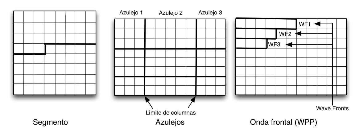 El procesamiento paralelo de frente de onda y los azulejos en el códec HEVC