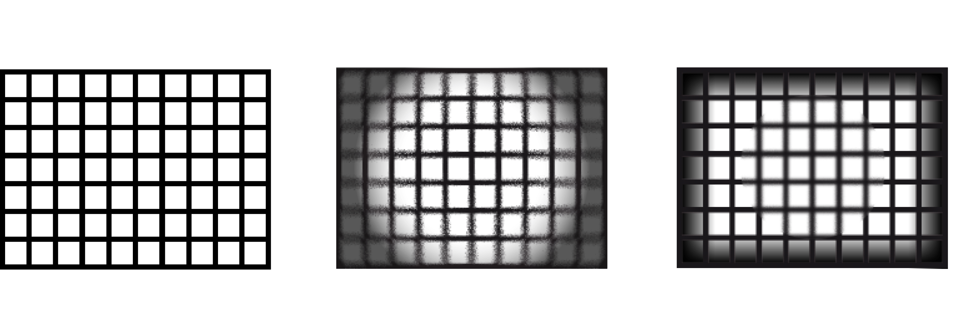 En la figura siguiente, se aprecia la imagen que se deriva de este efecto; a la izquierda se muestra un objeto en forma de cuadrícula. En el centro se muestra la misma figura en la que se ha abierto mucho el diafragma. En ella se aprecia un mejor enfoque en la zona central (que es donde se encuentran los rayos paraxiales) y desenfoque alrededor.
