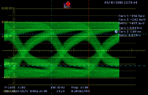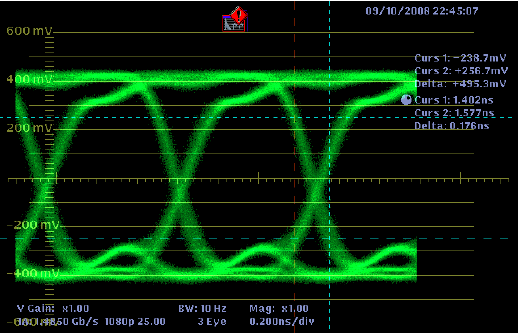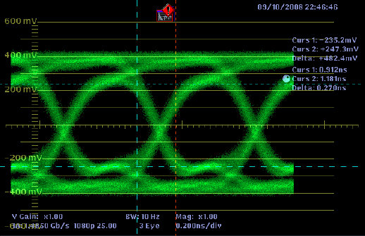 Puede parecer que la utilización de cables de vídeo que sean adecuados para un sistema de televisión (RG-59 por ejemplo)puedan ser aptos también para otro tipo de sistemas de televisión (SDI-SD o SDI-HD), pero como he comentado antes, esto acarrea verdaderos problemas. Por ello, a continuación voy a poner unas capturas realizadas con el monitor forma de onda analizando una señal con el diagrama de ojo utilizando diferentes distancias.