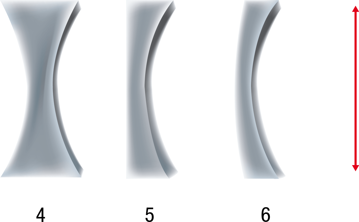 En la figura anterior, la lente 4 se denomina bicóncava, la lente 5 planocóncava y la lente 6 cóncavo-convexo (menisco divergente).