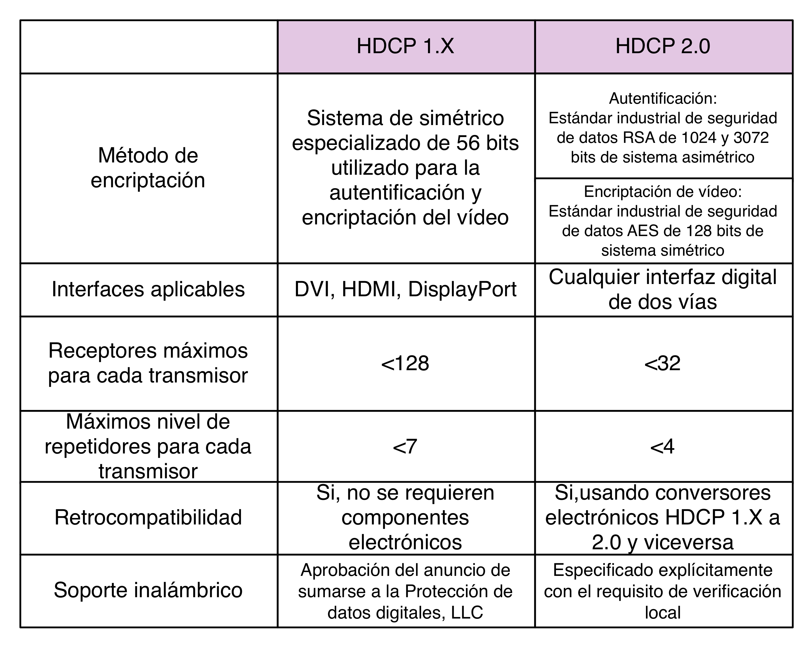 En la tabla anterior se muestran las diferencias que existen entre las dos versiones de HDCP. Si conoces alguna más, o nos puedes aportar más datos sobre sistemas de encriptación de datos no pierdas tiempo y deja un comentario a continuación.
